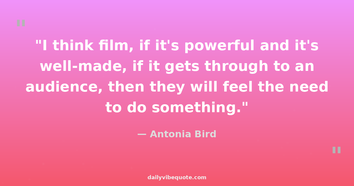 "I think film, if it's powerful and it's well-made, if it gets through to an audience, then they will feel the need to do something."