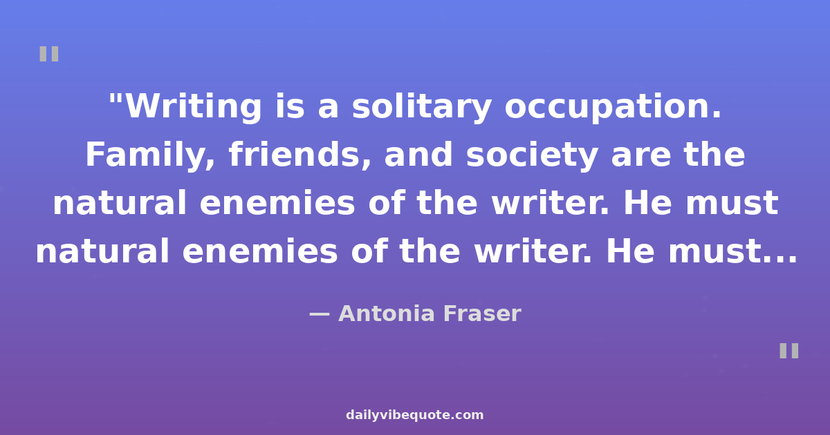 "Writing is a solitary occupation. Family, friends, and society are the natural enemies of the writer. He must be alone, uninterrupted, and slightly savage if he is to sustain and complete an undertaking."