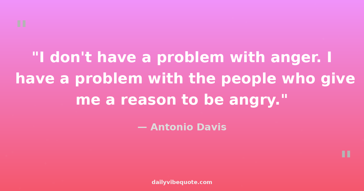 "I don't have a problem with anger. I have a problem with the people who give me a reason to be angry."