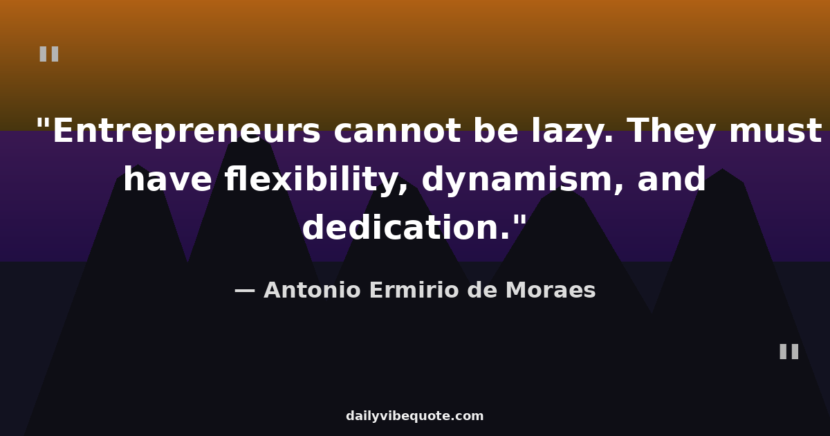 "Entrepreneurs cannot be lazy. They must have flexibility, dynamism, and dedication."