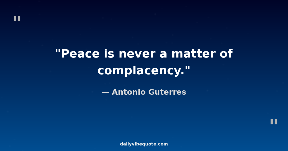 "Peace is never a matter of complacency."