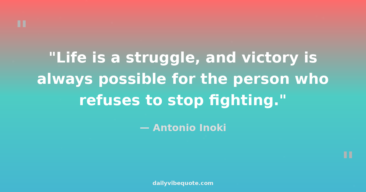 "Life is a struggle, and victory is always possible for the person who refuses to stop fighting."