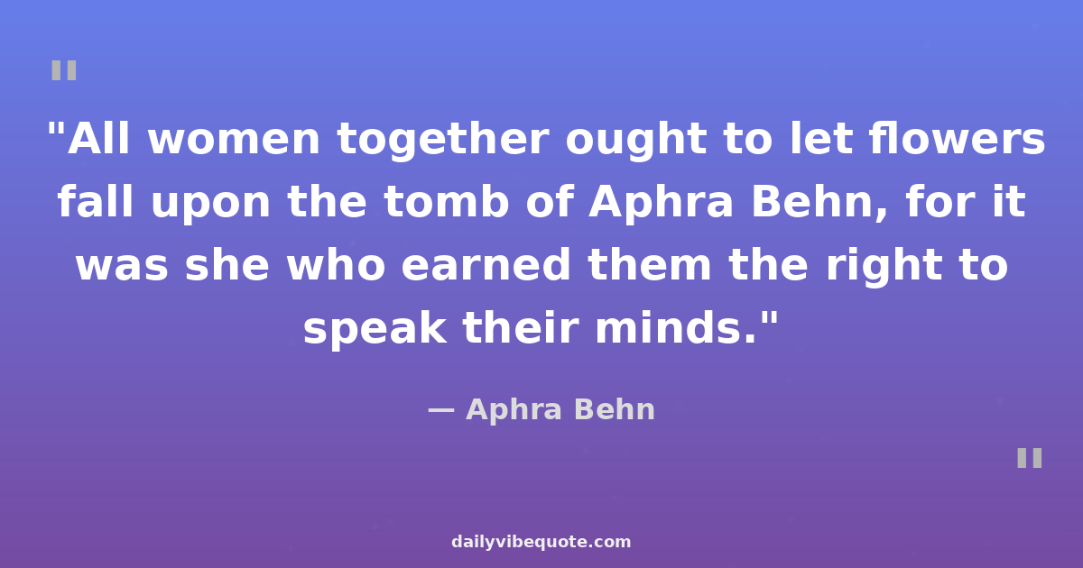 "All women together ought to let flowers fall upon the tomb of Aphra Behn, for it was she who earned them the right to speak their minds."