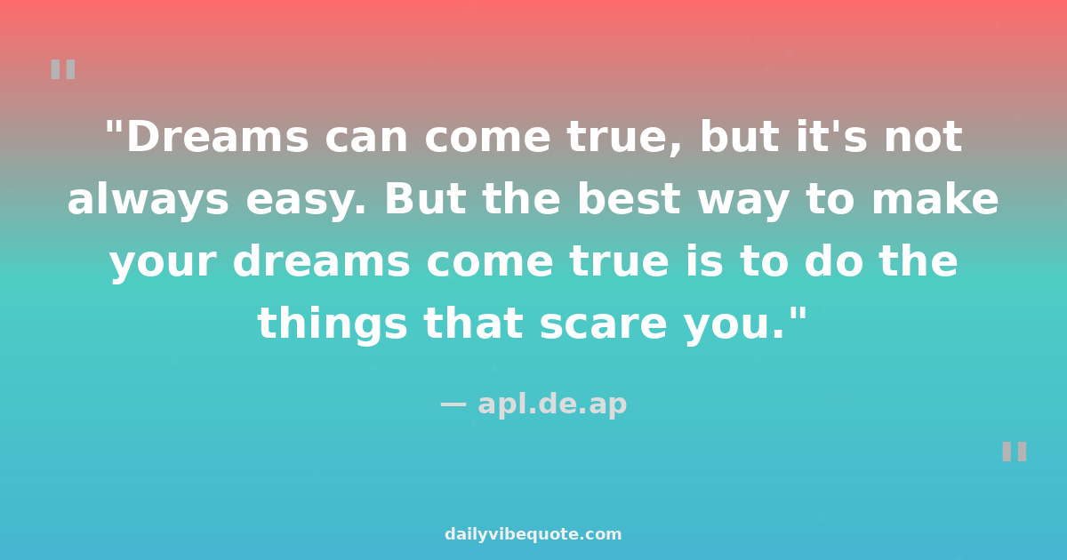 "Dreams can come true, but it's not always easy. But the best way to make your dreams come true is to do the things that scare you."