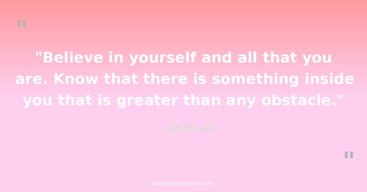"Believe in yourself and all that you are. Know that there is something inside you that is greater than any obstacle."