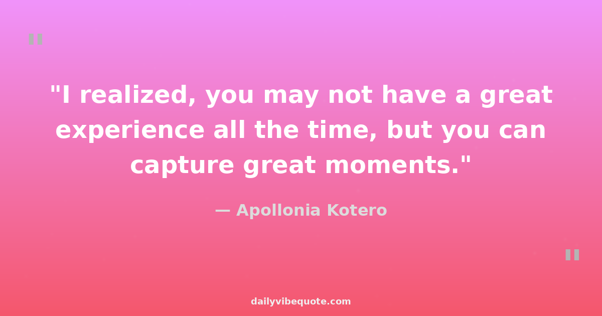 "I realized, you may not have a great experience all the time, but you can capture great moments."
