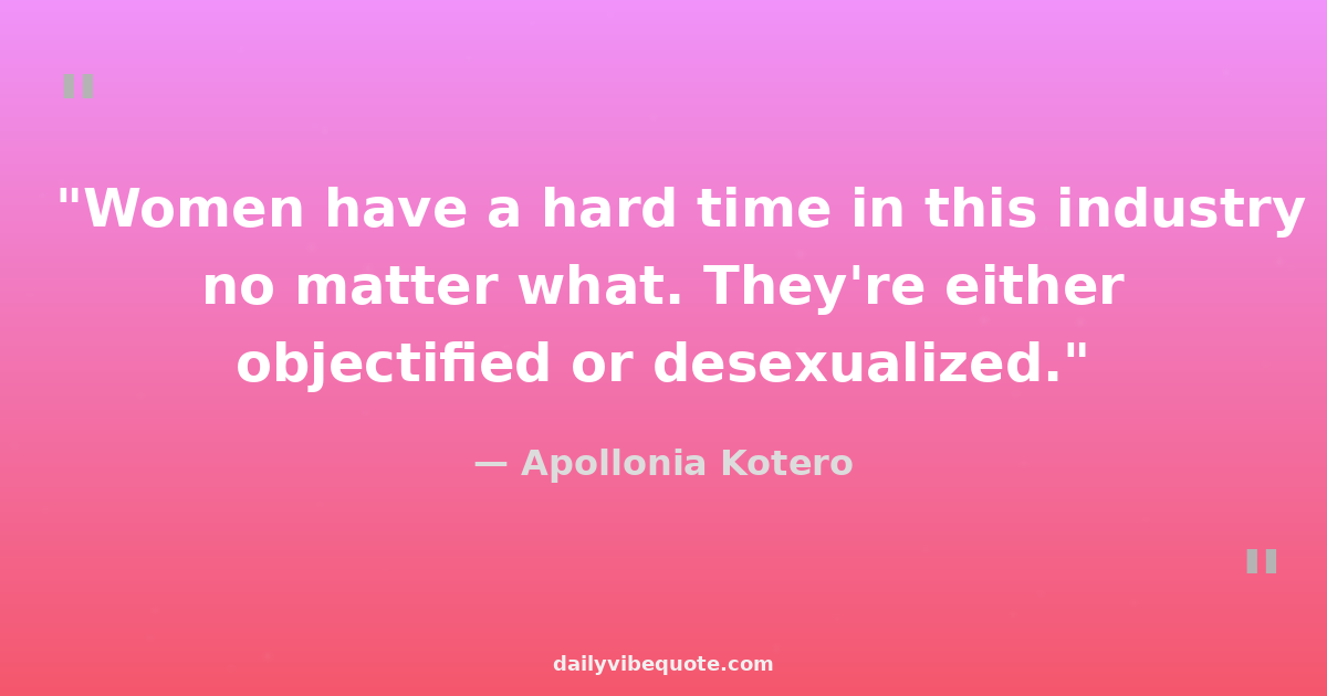 "Women have a hard time in this industry no matter what. They're either objectified or desexualized."