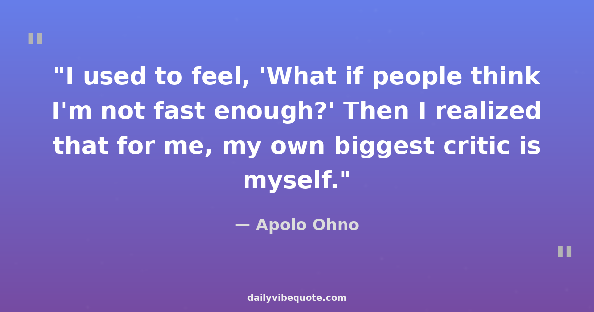 "I used to feel, 'What if people think I'm not fast enough?' Then I realized that for me, my own biggest critic is myself."