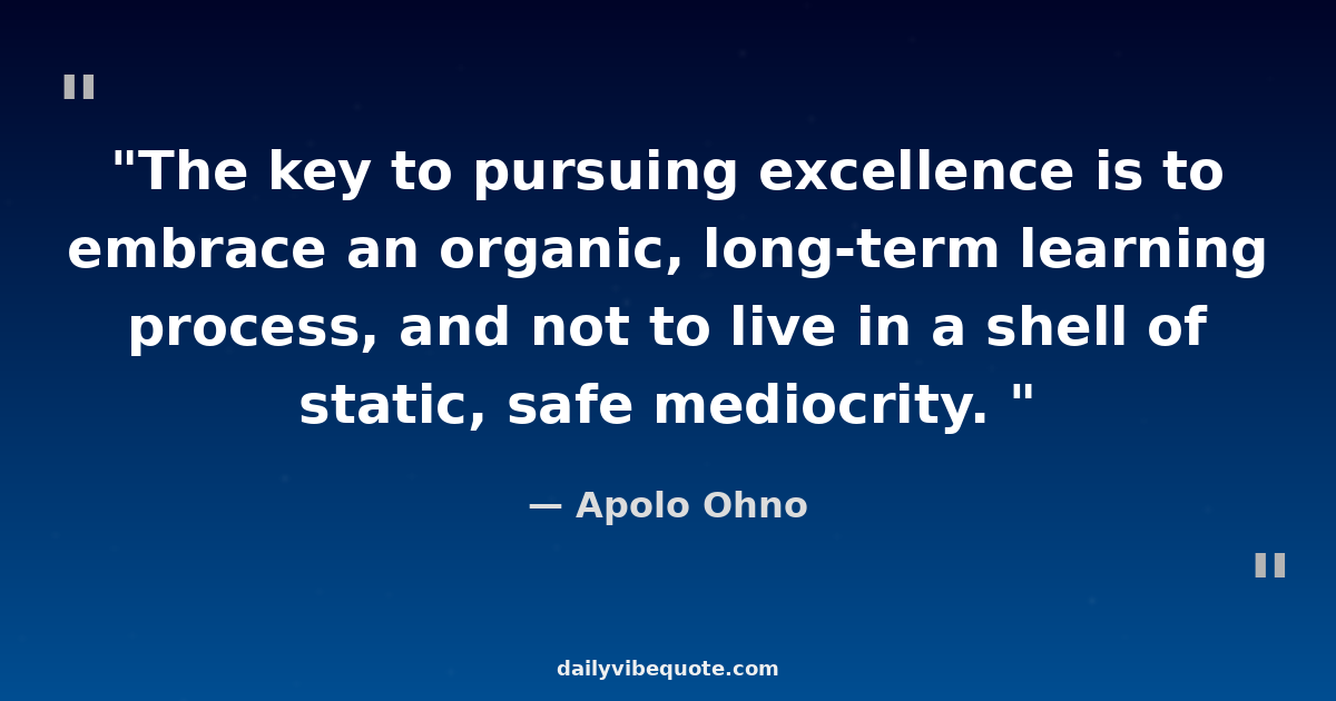 "The key to pursuing excellence is to embrace an organic, long-term learning process, and not to live in a shell of static, safe mediocrity. "