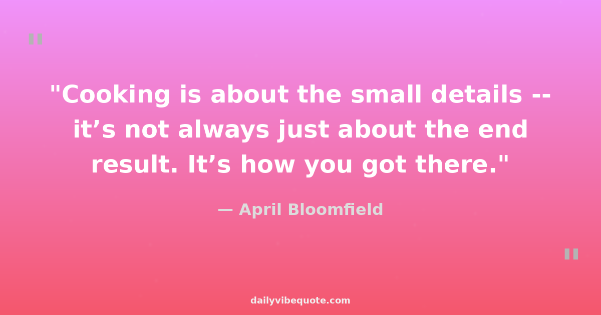 "Cooking is about the small details -- it’s not always just about the end result. It’s how you got there."