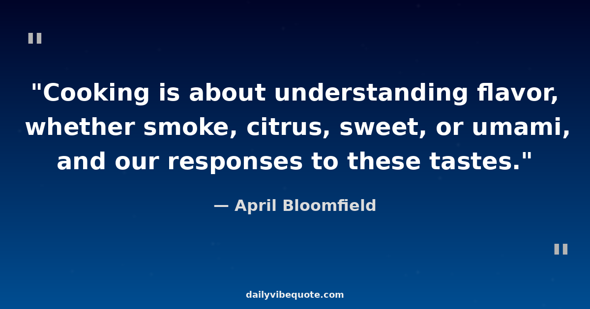 "Cooking is about understanding flavor, whether smoke, citrus, sweet, or umami, and our responses to these tastes."