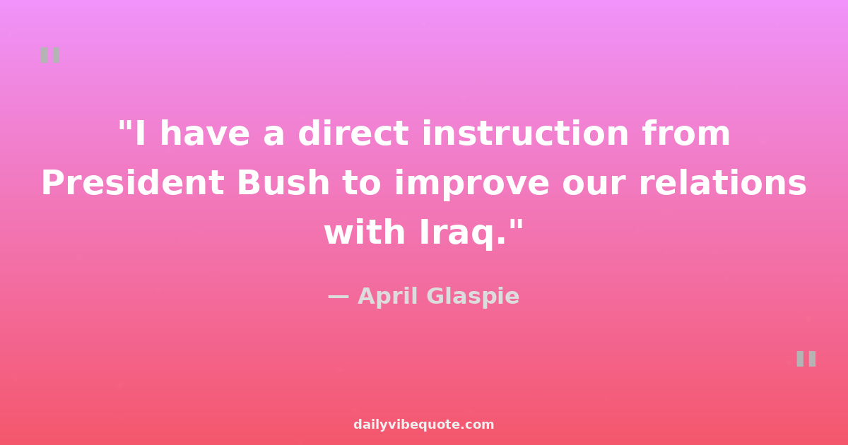 April Glaspie is a retired American diplomat who served as the United States Ambassador to Iraq from 1989 to 1990. She gained international attention for her role in the events leading up to the Gulf War. Glaspie's diplomatic exchange with Saddam Hussein, the President of Iraq at the time, is widely debated and criticized for its ambiguity regarding U.S. intentions towards the Iraq-Kuwait dispute. After her tenure in Iraq, Glaspie continued to work in the U.S. State Department before retiring from diplomatic service.