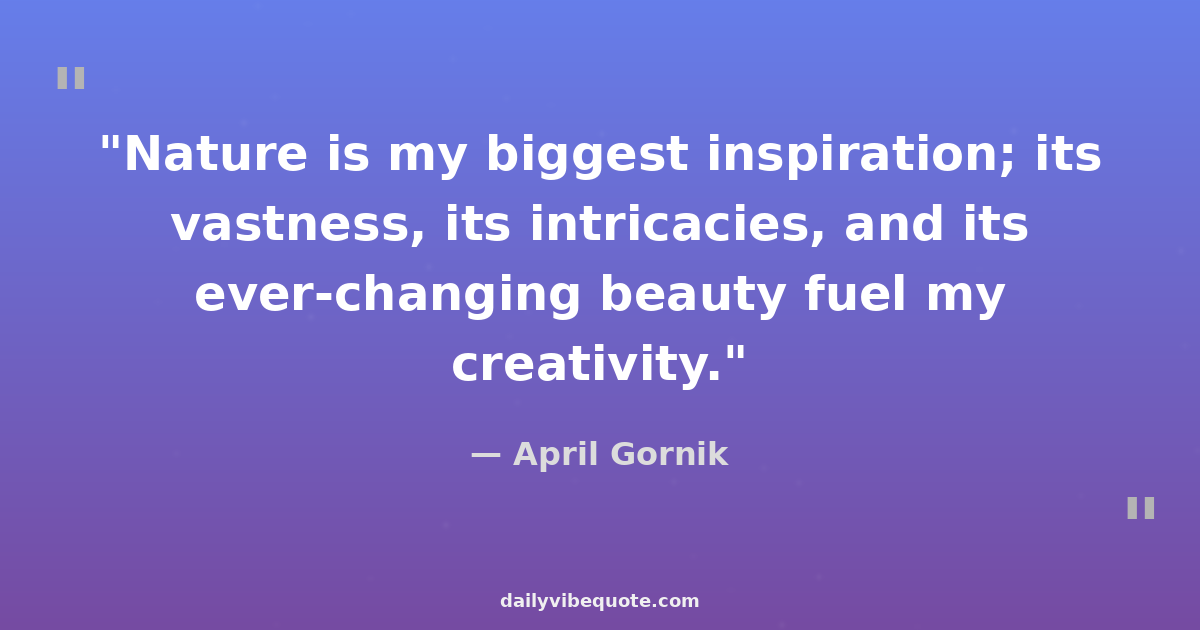 "Nature is my biggest inspiration; its vastness, its intricacies, and its ever-changing beauty fuel my creativity."