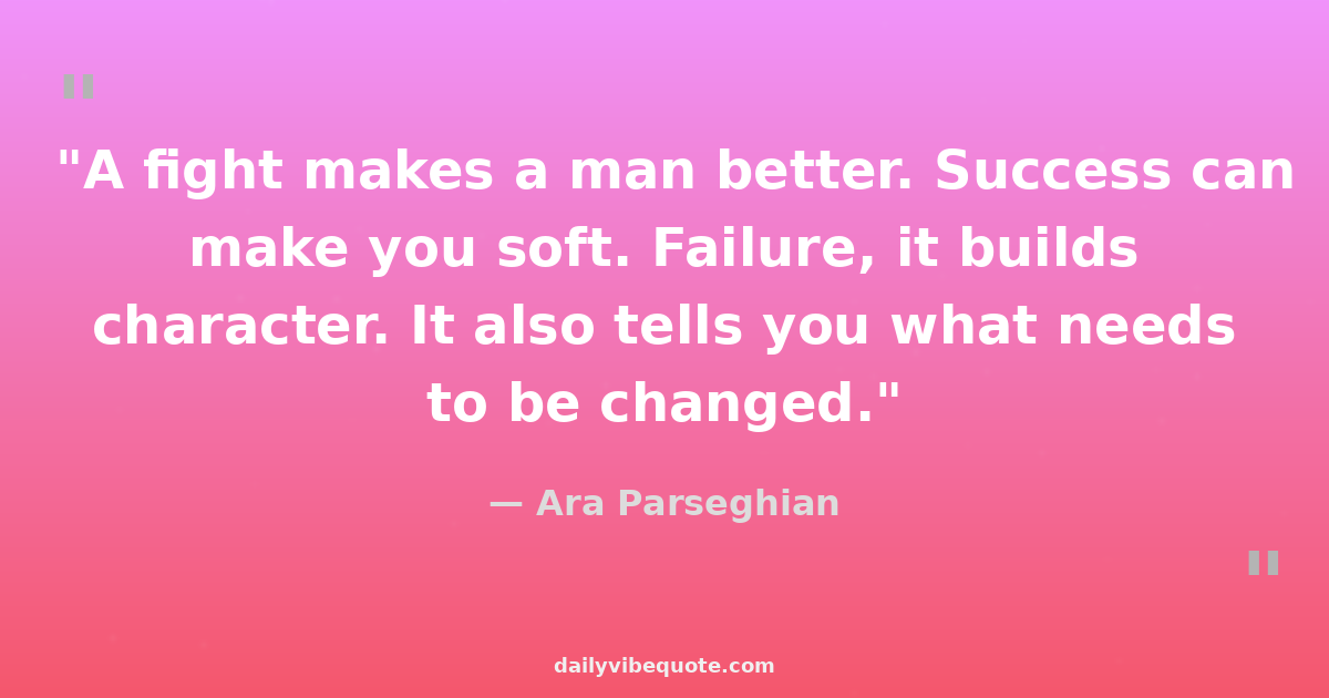 "A fight makes a man better. Success can make you soft. Failure, it builds character. It also tells you what needs to be changed."