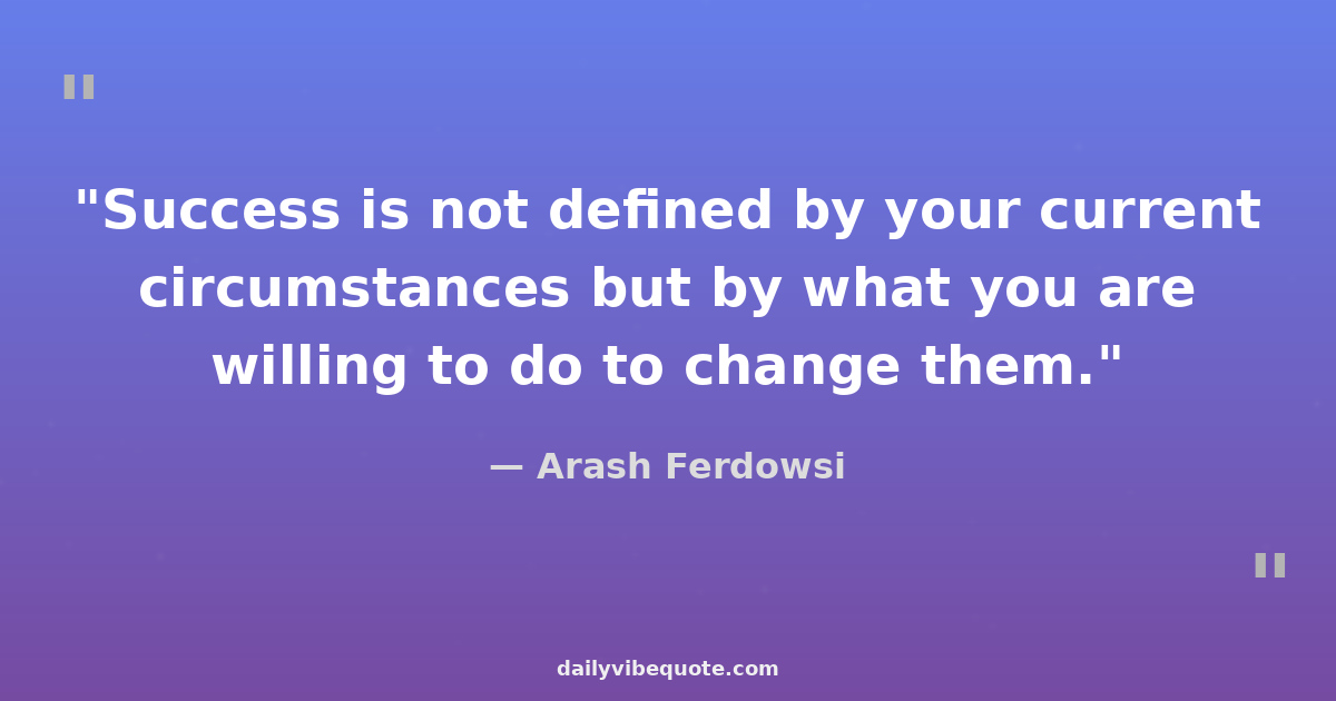 "Success is not defined by your current circumstances but by what you are willing to do to change them."