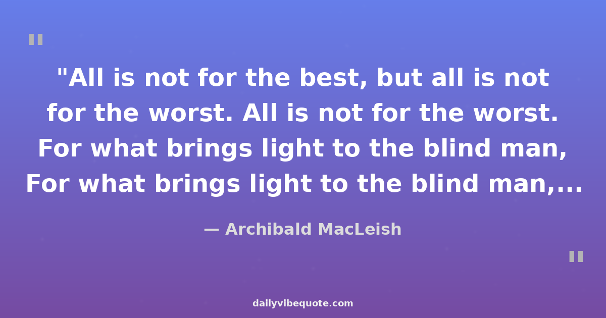 "All is not for the best, but all is not for the worst. All is not for the worst. For what brings light to the blind man, is worse than that which brings night to the bird."