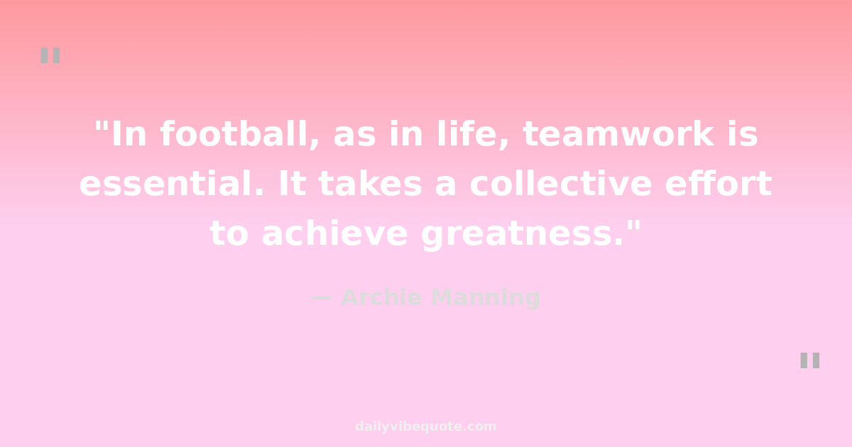"In football, as in life, teamwork is essential. It takes a collective effort to achieve greatness."