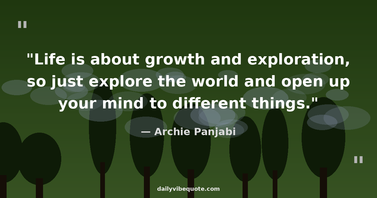 "Life is about growth and exploration, so just explore the world and open up your mind to different things."