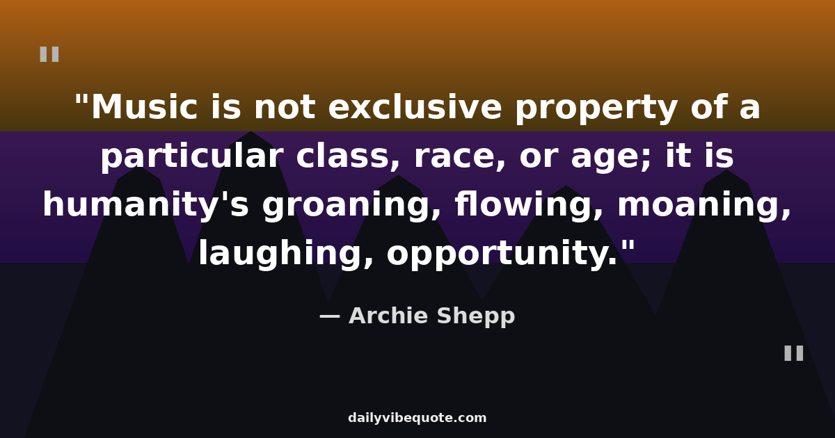 "Music is not exclusive property of a particular class, race, or age; it is humanity's groaning, flowing, moaning, laughing, opportunity."