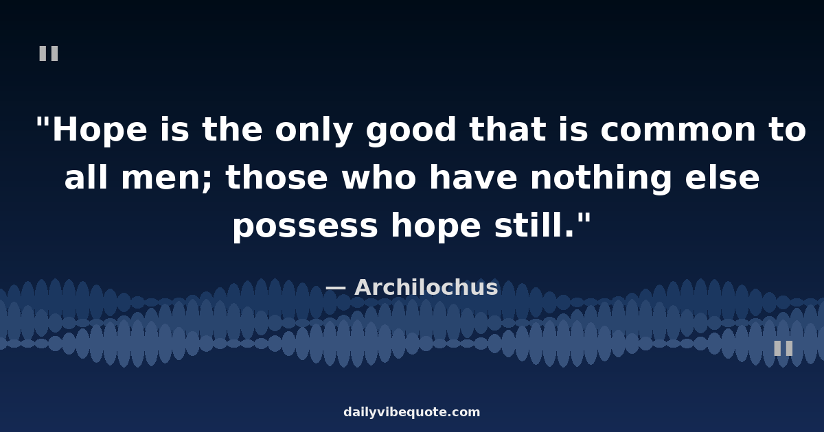 "Hope is the only good that is common to all men; those who have nothing else possess hope still."