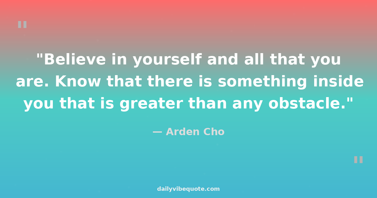 "Believe in yourself and all that you are. Know that there is something inside you that is greater than any obstacle."