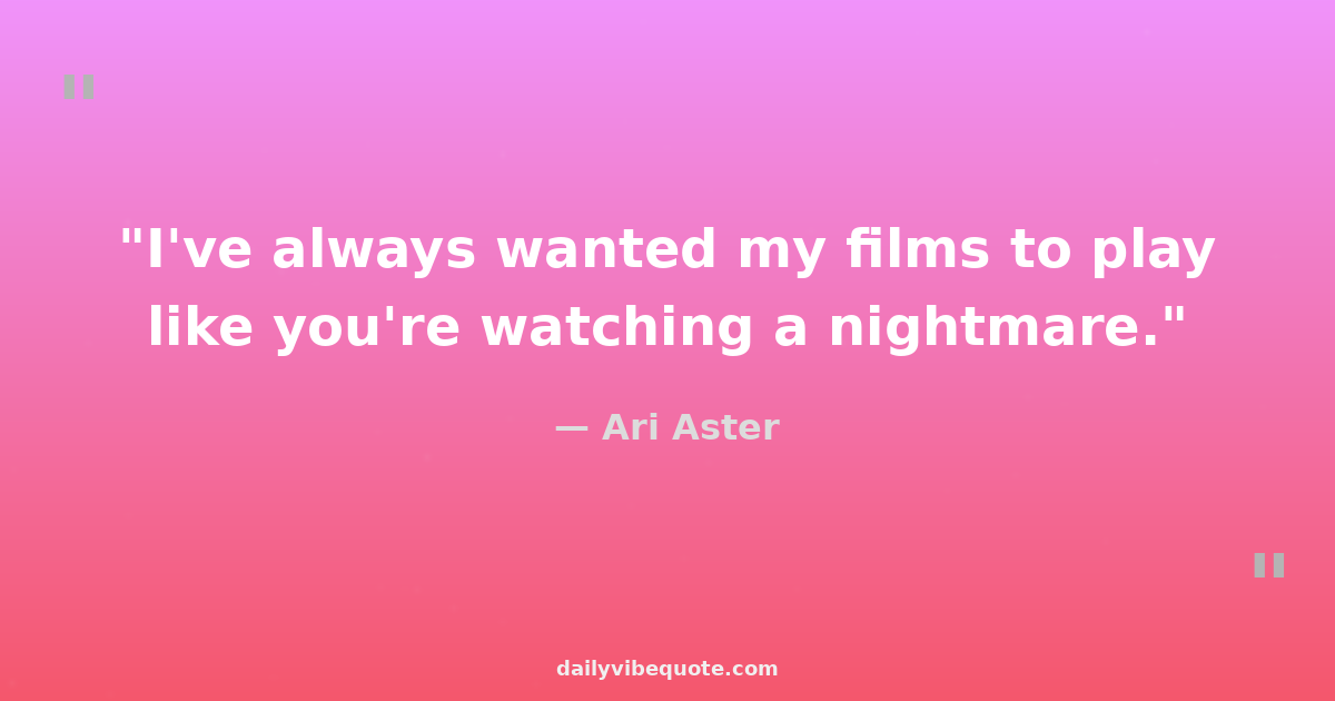 "I've always wanted my films to play like you're watching a nightmare."