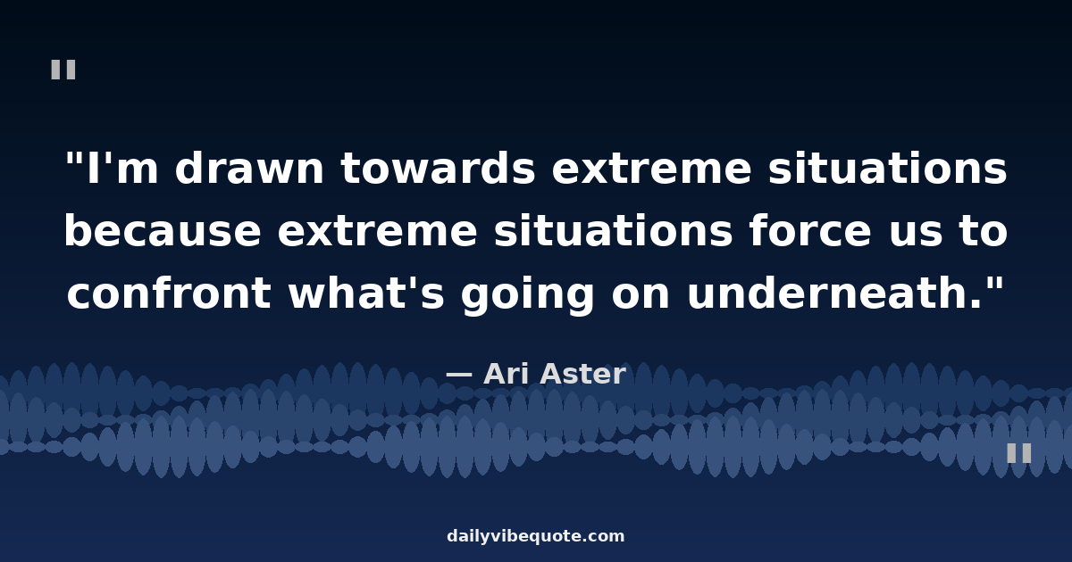 "I'm drawn towards extreme situations because extreme situations force us to confront what's going on underneath."