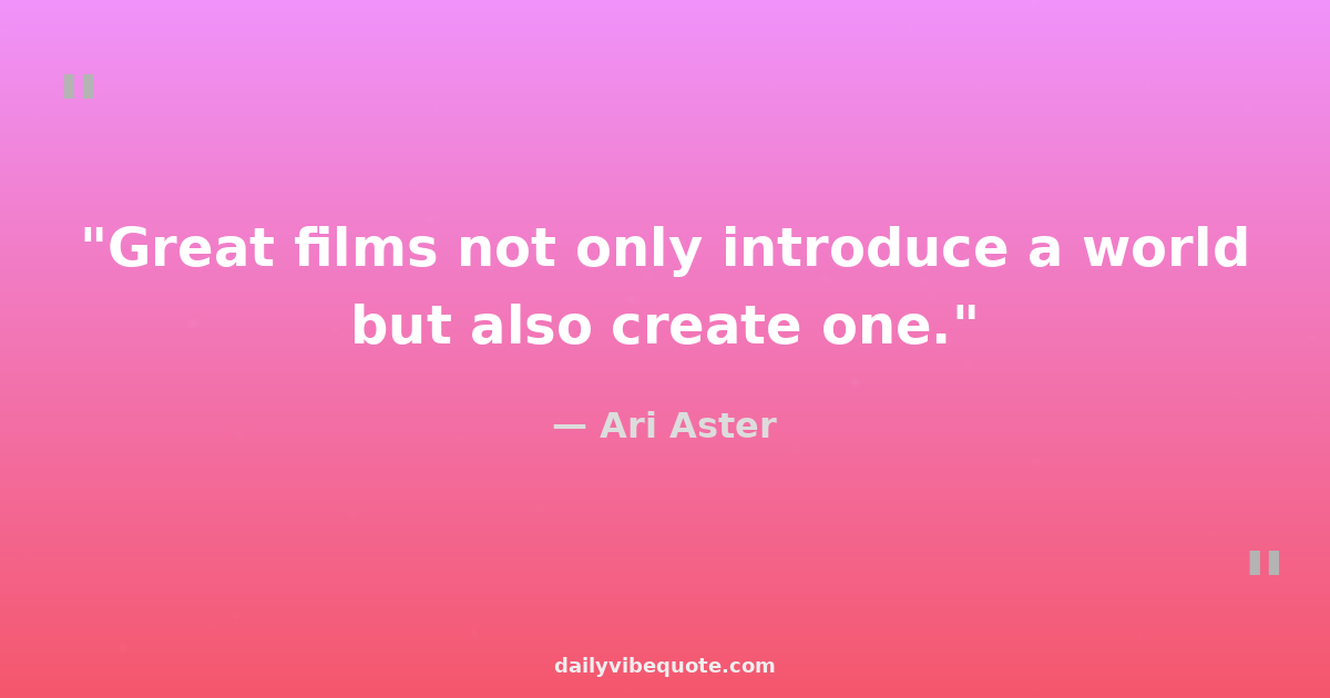 "Great films not only introduce a world but also create one."