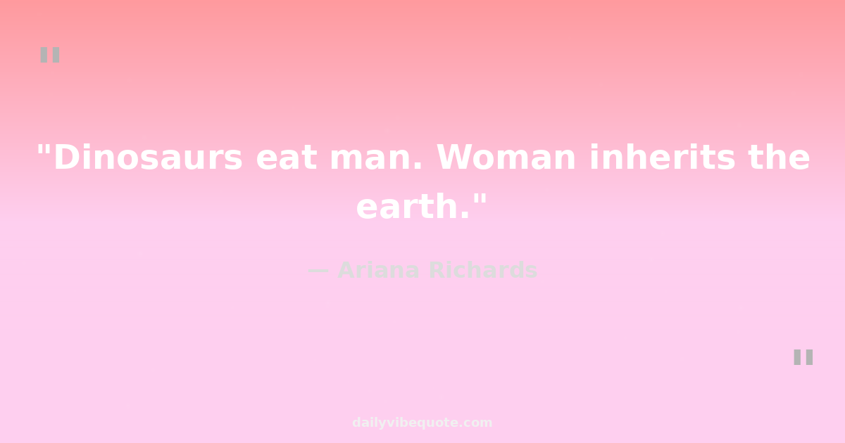 "Dinosaurs eat man. Woman inherits the earth."