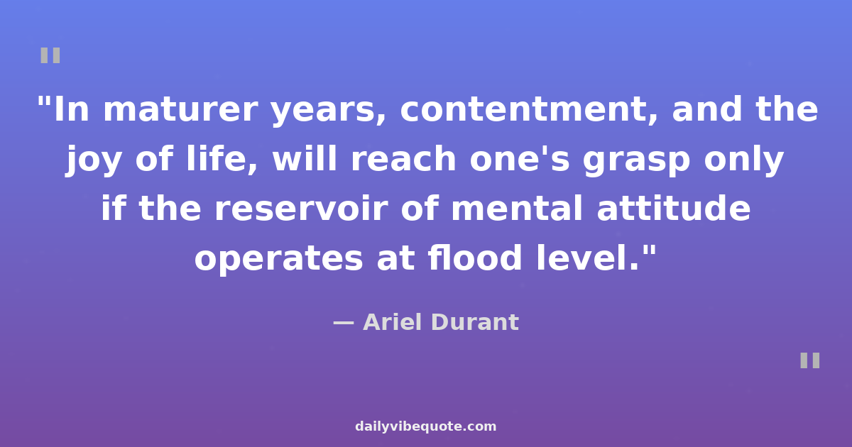 "In maturer years, contentment, and the joy of life, will reach one's grasp only if the reservoir of mental attitude operates at flood level."