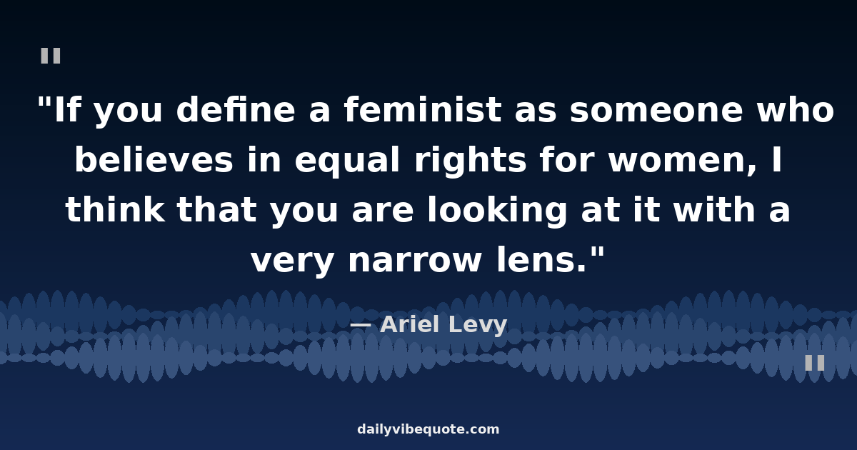 "If you define a feminist as someone who believes in equal rights for women, I think that you are looking at it with a very narrow lens."