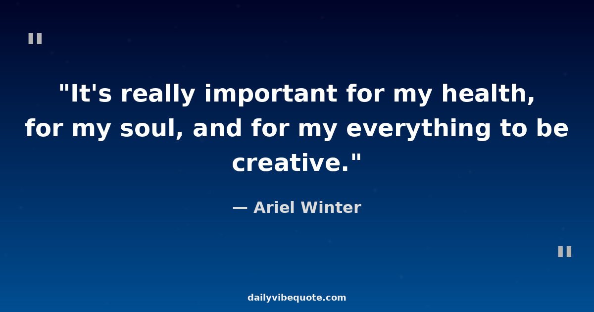 "It's really important for my health, for my soul, and for my everything to be creative."