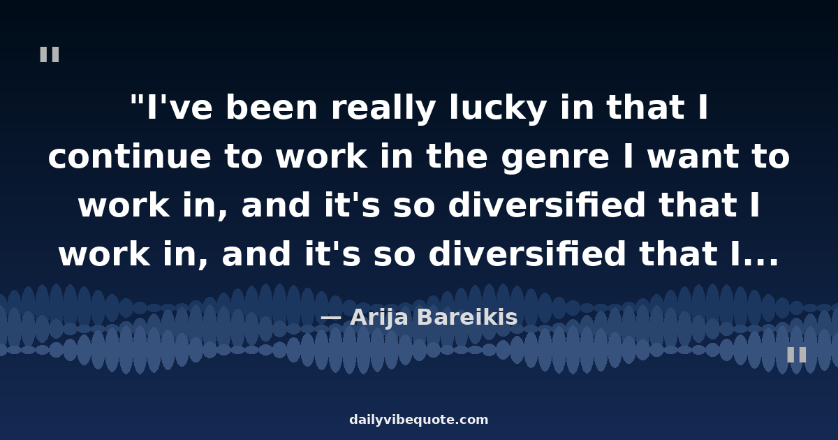 "I've been really lucky in that I continue to work in the genre I want to work in, and it's so diversified that I still feel challenged in what I'm doing."