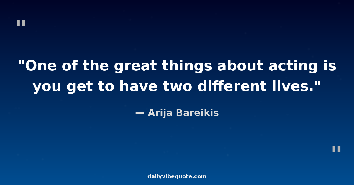 "One of the great things about acting is you get to have two different lives."