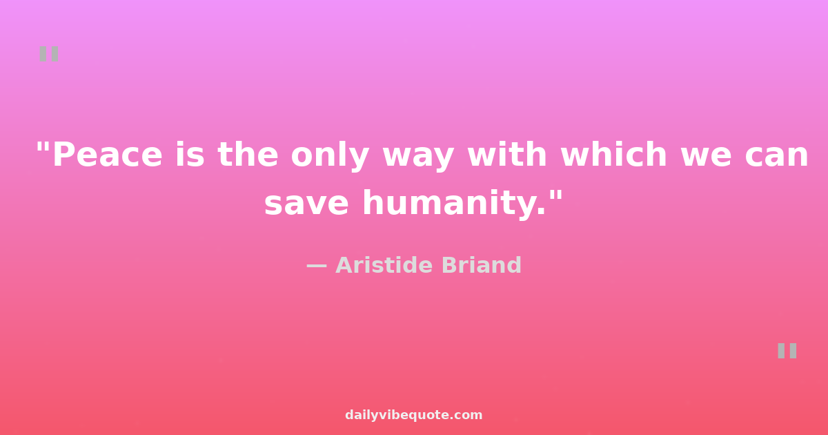 "Peace is the only way with which we can save humanity."