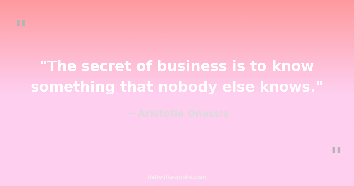 "The secret of business is to know something that nobody else knows."