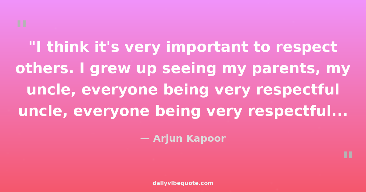 "I think it's very important to respect others. I grew up seeing my parents, my uncle, everyone being very respectful towards everyone around them. Life is too short and unpredictable to be otherwise."