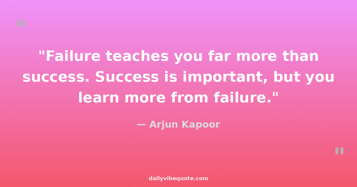 "Failure teaches you far more than success. Success is important, but you learn more from failure."