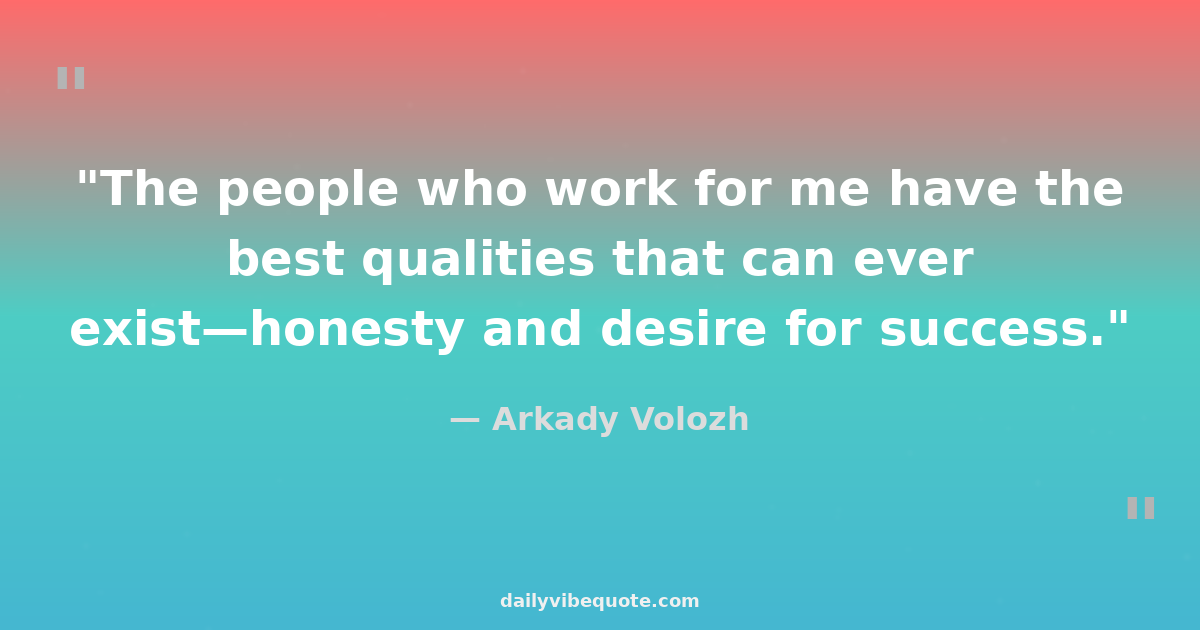 "The people who work for me have the best qualities that can ever exist—honesty and desire for success."