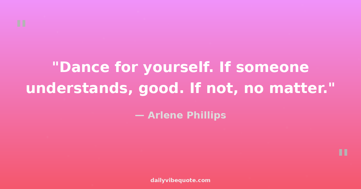 "Dance for yourself. If someone understands, good. If not, no matter."