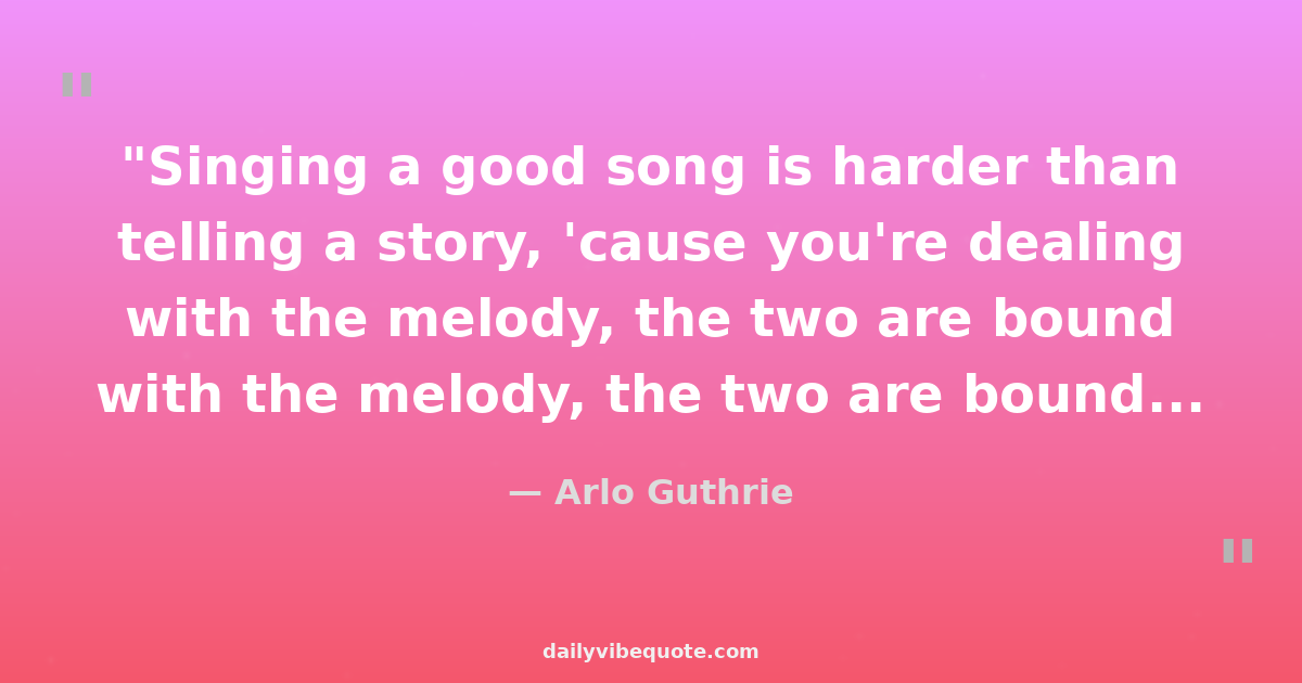 "Singing a good song is harder than telling a story, 'cause you're dealing with the melody, the two are bound together but you can't do it all at once."