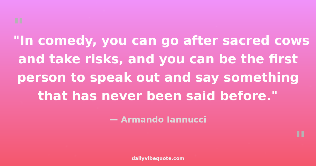 "In comedy, you can go after sacred cows and take risks, and you can be the first person to speak out and say something that has never been said before."
