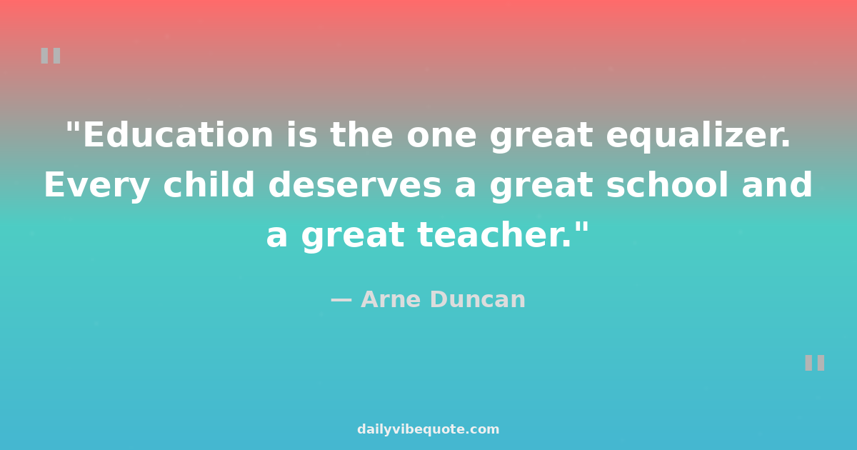 "Education is the one great equalizer. Every child deserves a great school and a great teacher."