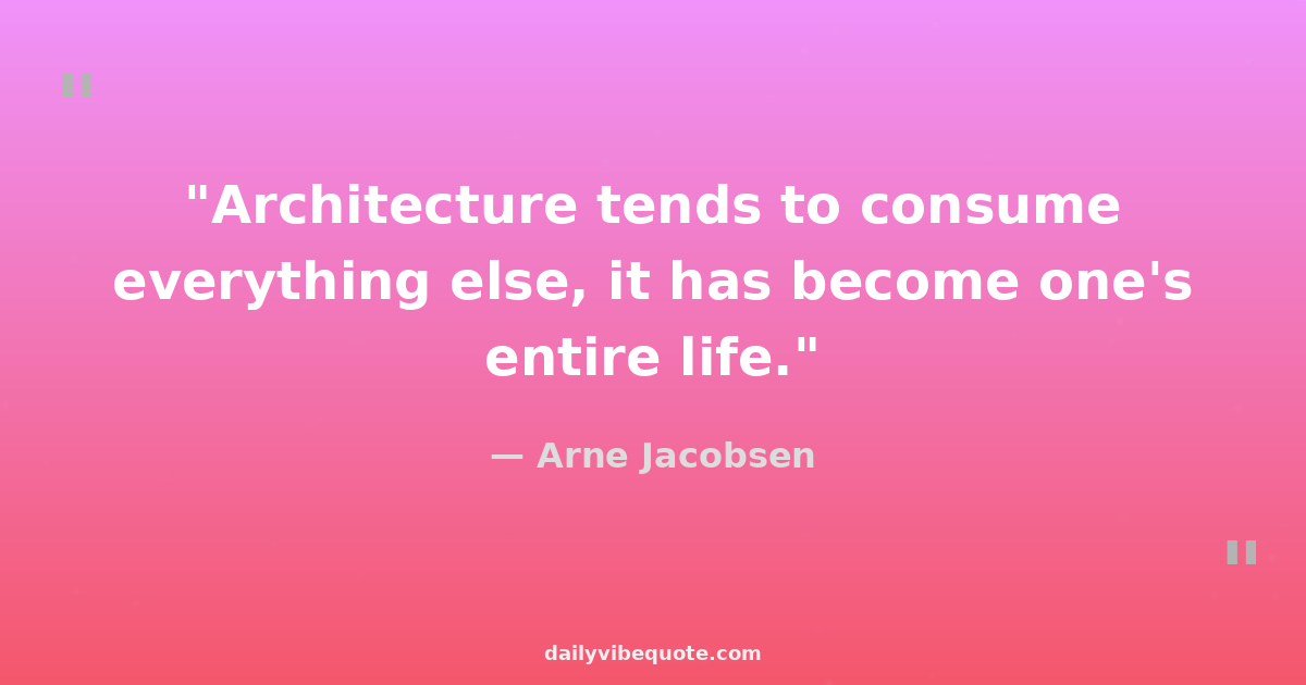 "Architecture tends to consume everything else, it has become one's entire life."