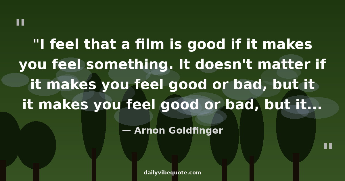 "I feel that a film is good if it makes you feel something. It doesn't matter if it makes you feel good or bad, but it has to evoke a genuine emotional response."