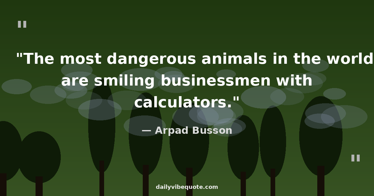 "The most dangerous animals in the world are smiling businessmen with calculators."