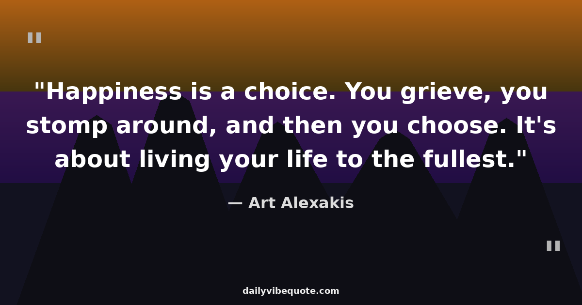 "Happiness is a choice. You grieve, you stomp around, and then you choose. It's about living your life to the fullest."