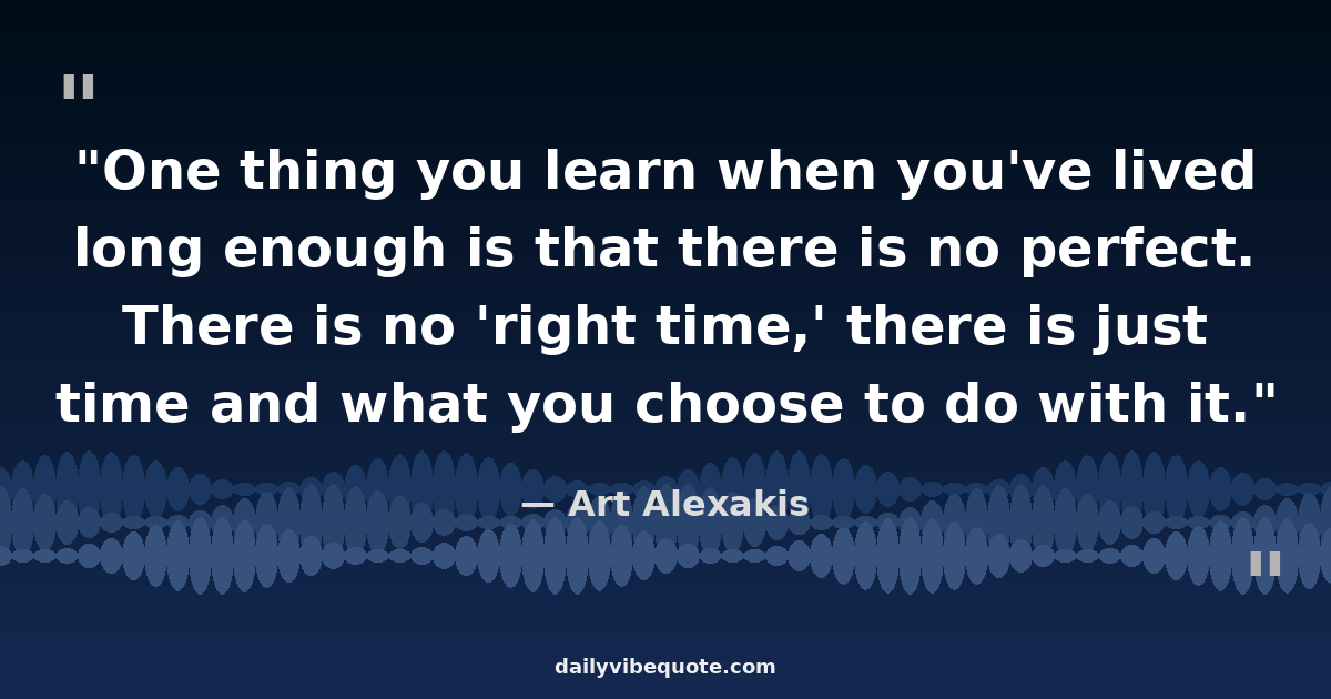 "One thing you learn when you've lived long enough is that there is no perfect. There is no 'right time,' there is just time and what you choose to do with it."