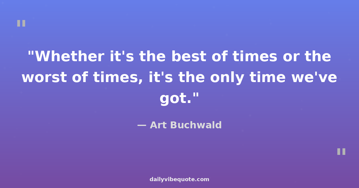 "Whether it's the best of times or the worst of times, it's the only time we've got."