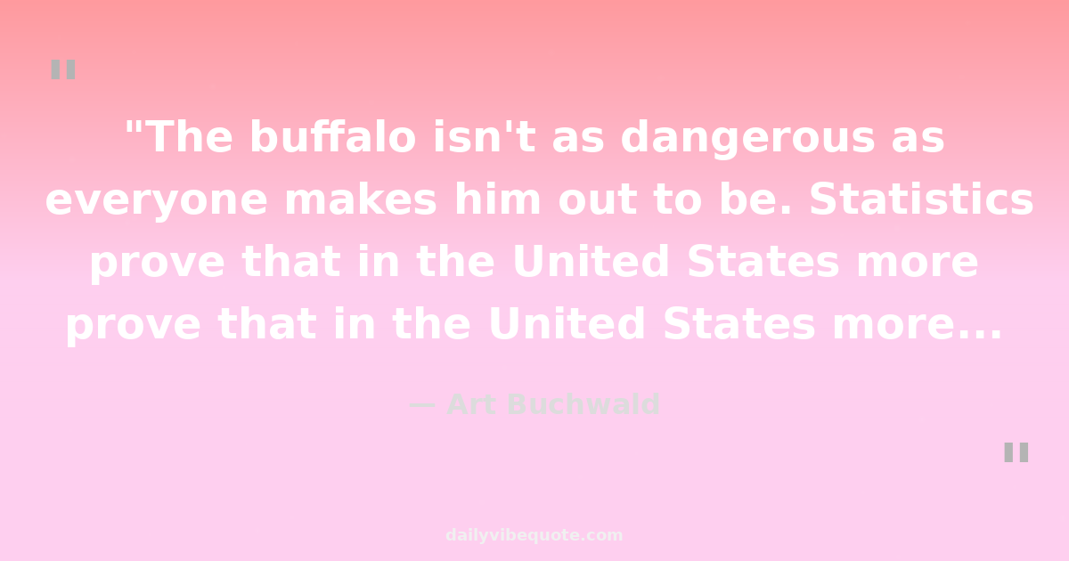 "The buffalo isn't as dangerous as everyone makes him out to be. Statistics prove that in the United States more Americans are killed in automobile accidents than are killed by buffalo."
